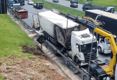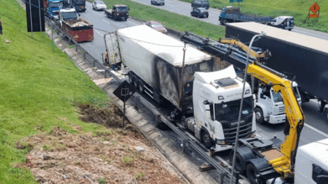 Uma carreta carregada com frios e laticínios pegou fogo na madrugada desta sexta-feira (20), na BR-116, no bairro Umbará, em Curitiba, e foi alvo de furto de carga...