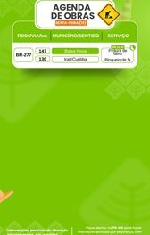 🌤️ Sol entre nuvens nesta sexta-feira em todo o trecho da Via Araucária. 🔴 Na BR-277 km 182, em Palmeira , sentido Curitiba, faixa interditada devido a um sinistro...