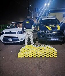 A Polícia Rodoviária Federal (PRF) apreendeu, na madrugada desta quarta-feira (8), por volta das 0h30, cerca de 99,2 kg de cocaína durante fiscalização no km 715 da BR...