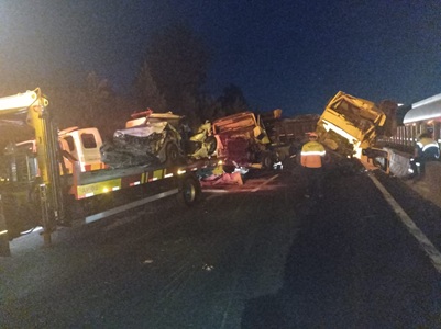 Por volta das 13h15, um caminhão sem freios colidiu com outros três caminhões, uma caminhonete Fiat Strada e um automóvel Chevrolet Onix. Os veículos atingidos aguardavam na fila a liberação da pista devido ao destombamento de um contêiner ocorrido 1 km à frente do local do acidente.