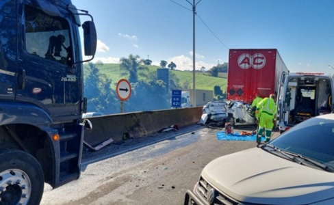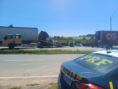 Segundo a PRF, os três veículos seguiam pela faixa da esquerda quando o primeiro caminhão reduziu a velocidade. O automóvel, emplacado em Assaí (PR), também diminuiu, mas o segundo caminhão não conseguiu frear a tempo e colidiu na traseira do carro, que foi esmagado contra o caminhão à frente.