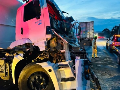 De acordo com informações da PRF, um caminhão Scania R450, atrelado a um semirreboque Facchini, estava parado na fila de veículos devido a obras na rodovia, quando foi atingido na traseira por um caminhão VW 17.330. O condutor do segundo veículo, ao se deparar com a retenção, não conseguiu frear a tempo e acabou colidindo.