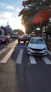 Atropelamento de pedestre, por volta das 05h50 deste domingo (25), na BR-376, km 176,8, na Avenida Colombo, em Maringá/PR, envolvendo um automóvel Fiat Cronos.