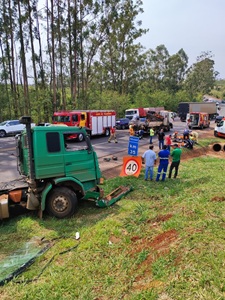 Foi na manhã desta Segunda 06-10 por volta das 10:00 HS. Um acidente entre duas carretas , batida na traseira no redutor de velocidade , equipes de socorro estão no local. o SOldado Rafael do Bombeiro trais detalhe do Acidnte e Atendimento ( Parabéns equipes do Quartel do Bombeiro de Mandaguari pela rapidez do Atendimento)