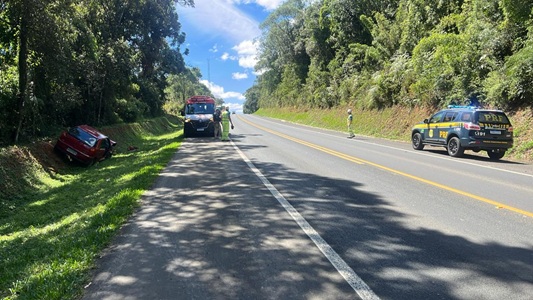 Na manhã deste sábado (11), por volta das 11h, a Polícia Rodoviária Federal (PRF) atendeu a um acidente do tipo saída de pista seguida de capotamento e colisão com objeto (talude) no km 270 da BR-373, em Prudentópolis (PR). O acidente envolveu um veículo e resultou em duas pessoas lesionadas.