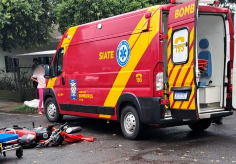 Acidente violento em Mandaguari no 5 conjunto uma vítima grave estava de moto