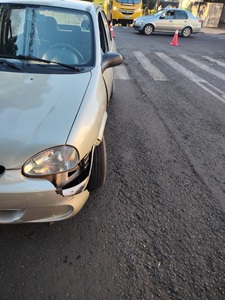 Foi na tarde de Hoje terça na esquina da Rua Padre Antonio Lock próximo a Auto Escola o Corsa deu céta para virar a esqurda a moto entrou pra ultrapassar e bateu / a mulher 18 anos que estava na moto sofreu varias escoriações mais foi atendida pelo Siate estava Conciente e Orientada , soltando sangue pela boca pois a pancada foi forte no rosto .