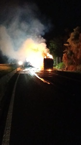 Em Imbaú/PR na BR 376 km 383 sentido decrescente, por volta de 01:30 do dia 12/03/2026, ocorreu um sinistro do tipo incêndio de veículo envolvendo uma combinação de carga tracionada pelo Scania G360 com placas de Maringá/PR, não houve vítimas lesionadas. Foi necessário a interdição total da pista sentido decrescente por cerca de 2 horas para trabalho do Corpo de Bombeiros para contenção das chamas, sendo a pista liberada parcialmente às 06:00h. A pista segue com interdição parcial para limpeza e remoção do veículo.