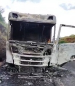 Carreta incendiou na tarde desta quinta 19 – 03 no contorno de Mandaguari
