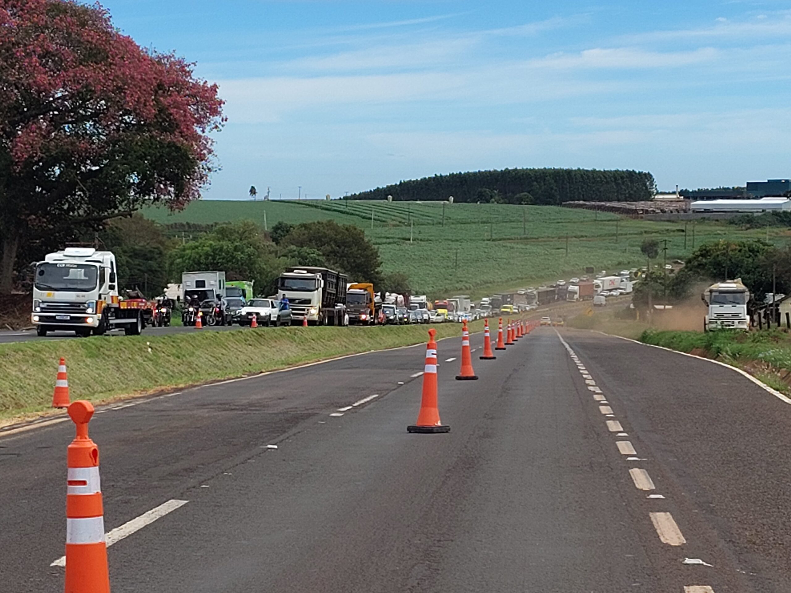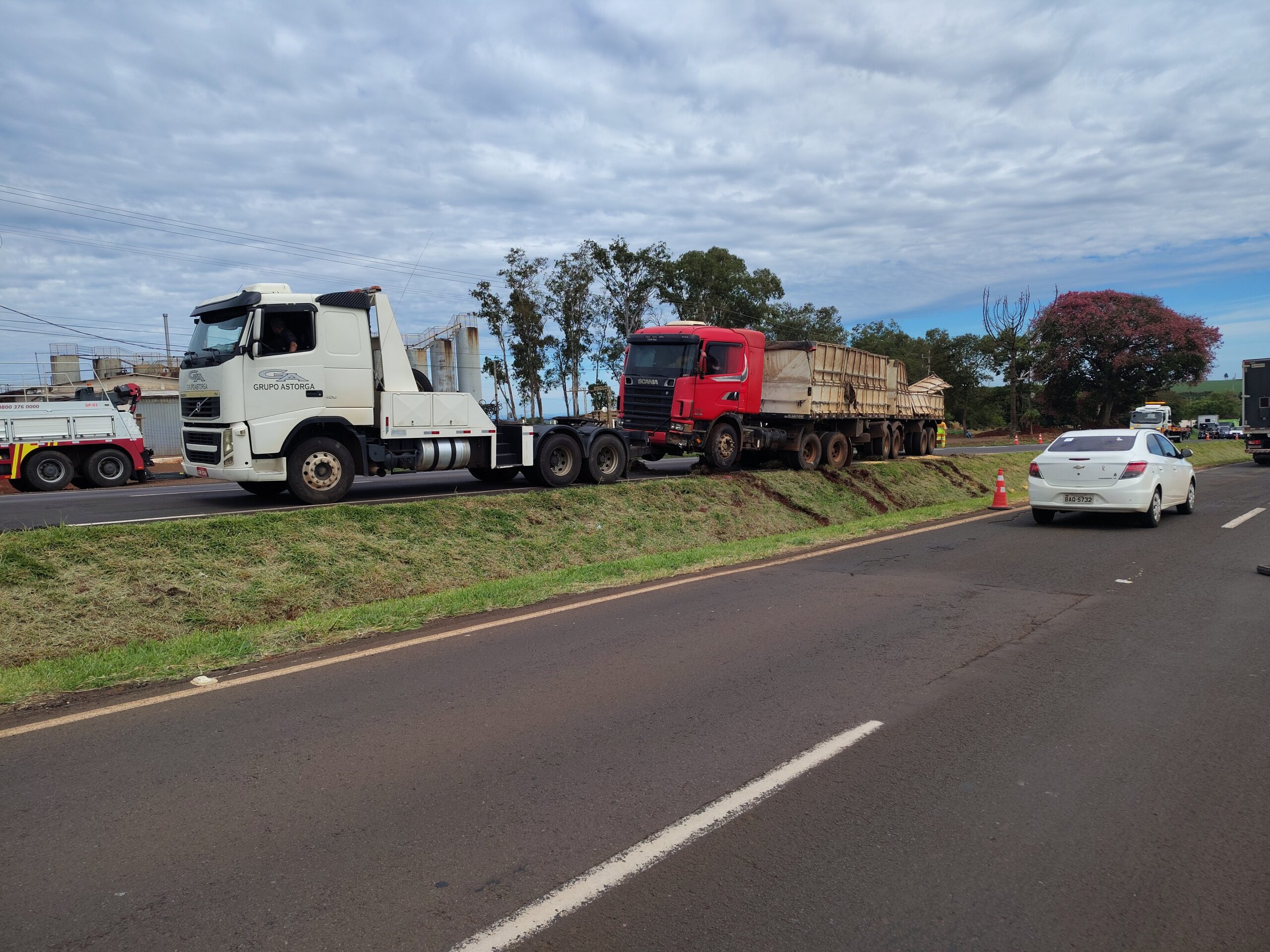 Dois grandes guinchos d CCR trabalharam com apoio da PRF orientando a parada do tráfego para retirar a bitrem de Pirapó que caiu na canaleta aí ser tomada por fumaça de outra carreta que estourou a Turbina , o trânsito ficou parado e congestionou em alguns km