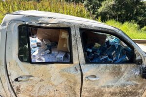 A Polícia Rodoviária Federal (PRF) realizou, na manhã deste domingo (25), apreensão de cigarros contrabandeados de origem paraguaia durante fiscalização na BR...