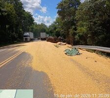 Na BR-277, km 496, foi registrado o tombamento de um caminhão que transportava carga de milho. O motorista, que ainda não teve sua identificação...