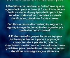 A Prefeitura de Jandaia do Sul informa que as ações de limpeza urbana já foram iniciadas em toda a cidade. As equipes irão recolher telhas, colchões e móveis...