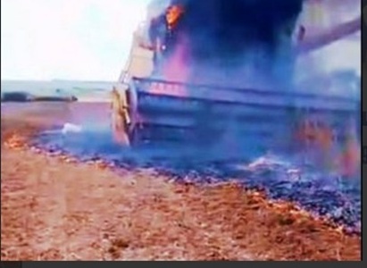 Uma colheitadeira foi completamente destruída por um incêndio na tarde desta sexta-feira (06-02), na região do distrito de Terra Nova, interior de Assis Chateaubriand .
