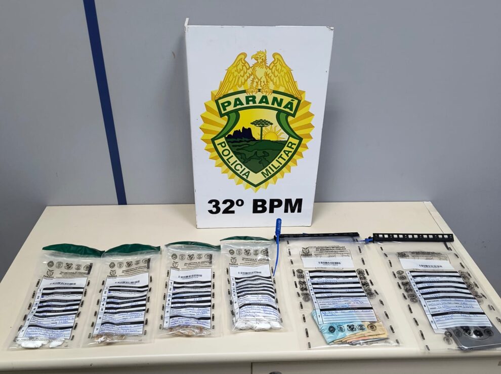 Equipe ROTAM em cumprimento à “OPERAÇÃO FORÇA TOTAL XXIV” intensificou patrulhamento na cidade de Itambé, quando abordou um masculino em local onde há denúncias de tráfico de drogas, sendo localizado 69 invólucros de substância análoga à cocaína, 13 invólucros de crack, R$299,00 em dinheiro trocado, e 01 aparelho celular. O autor de 22 anos, entorpecentes e objetos foram encaminhados e entregues na 23°DRP/Marialva.