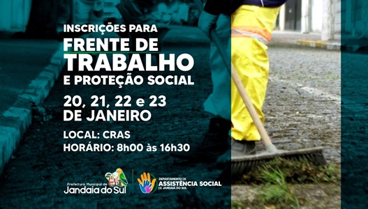 A Prefeitura Municipal de Jandaia do Sul, por meio do Departamento de Assistência Social, abriu as inscrições para a Frente de Trabalho e Proteção Social, iniciativa voltada à geração de oportunidades, fortalecimento da inclusão social e apoio às famílias em situação de vulnerabilidade.