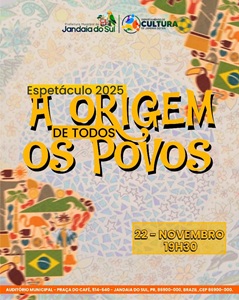 A Prefeitura de Jandaia do Sul, por meio do Departamento de Cultura, convida a população para prestigiar o espetáculo “A Origem de Todos os Povos”, que será apresentado neste Sábado dia 22 de novembro, às 19h30, no Auditório Municipal.