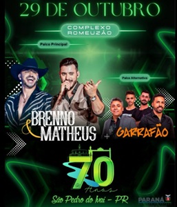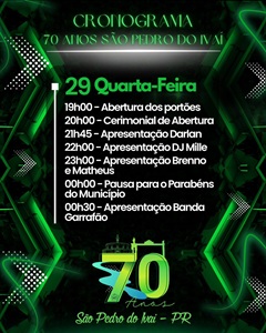 Participe, traga seus amigos e venha viver momentos únicos na Festa dos 70 Anos de São Pedro do Ivaí!