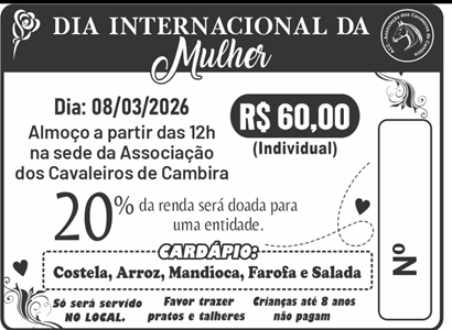 Hoje em Cambira vamos comemorar o dia da Mulher com uma suculenta churrascada