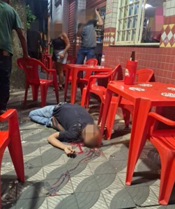 A testemunha não soube detalhar o acusado, tampouco o veículo utilizado no delito. A perícia apurou preliminarmente 13 estojos deflagrados cal 9mm e perfurações no crânio(nuca) e abdome. Outra vítima V. A. C. sofreu ferimendo por um disparo na perna esquerda autura da coxa, esse encaminhado pelo Samu que esteve presente no local, ambas as vítimas não possuem indicativo em prontuário, sem câmeras de monitoramento no local, apenas em outro comércio próximo.
