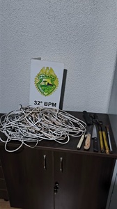 Diante da situação, foi realizada a abordagem dos suspeitos, sendo localizados e recuperados os fios furtados, bem como apreendidos os objetos utilizados na prática delituosa.