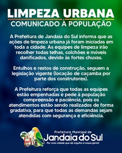 Limpeza Urbana – Comunicado à População de Jandaia do Sul
