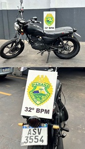 Durante patrulhamento pela Rua David Pavão, nas proximidades do numeral 295, a equipe visualizou uma motocicleta com a placa de identificação visivelmente adulterada. Foi realizada a abordagem do veículo, sendo constatado que a placa apresentava adulteração. No entanto, o número do chassi e a placa original correspondiam às características da motocicleta, placa ASV-3554, a qual também possui débitos administrativos.A condutora informou a equipe que não possuía CNH e que comprou a motocicleta por meio de aplicativo marketplace e que a placa ele comprou pelo aplicativo Shopee visto que a placa original estava quebrada .Diante dos fatos a motocicleta e a condutora,foram conduzidos até a delegacia de polícia civil de Sarandi para providências cabíveis