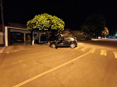 Motorista embriagado bate carro contra árvore no centro da cidade de Engenheiro Beltrão