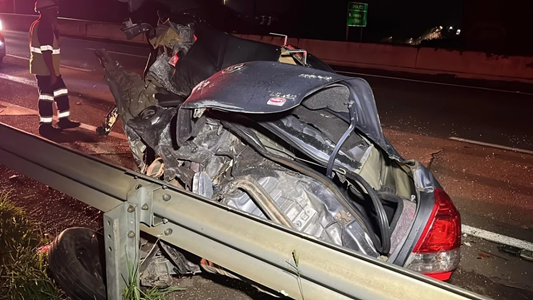 O carro foi arrastado por cerca de 20 metros após o acidente