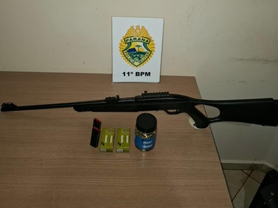 A equipe policial foi até a residência do casal, onde apreendeu um rifle calibre .22, carregadores e munições. O companheiro da vítima não foi localizado no local.
