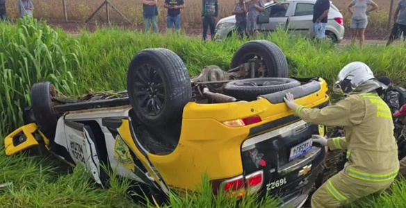 Dois cães farejadores que estavam na viatura sobreviveram ao acidente registrado na PR-323. Informações preliminares indicam que o veículo pode ter aquaplanado devido à forte chuva registrada no momento do capotamento. As circunstâncias do acidente devem ser apuradas pelas autoridades competentes.