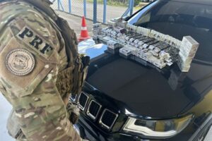 localizada no porta-malas, o abordado admitiu que estava realizando entrega de entorpecentes na região, e que