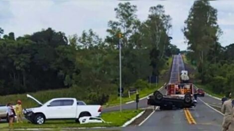 Hilux preta capotou após colisão lateral com outra camionete no entroncamento das PRs 466 e 487 . Uma colisão lateral entre duas Hilux foi registrada na tarde desta...