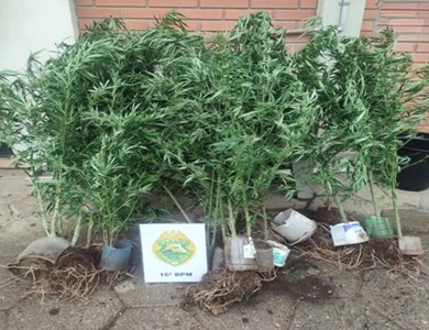 Durante as buscas, foram encontrados 20 pés de maconha plantados entre árvores e arbustos, caracterizando o cultivo ilegal da droga. As plantas foram apreendidas pela equipe policial.