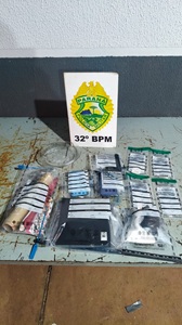 Em patrulhamento no jardim Canadá, equipe abordou motoboy que iria realizar entrega de cocaína. Na sequência deslocou até a casa do traficante na rua Amarílis, que distribuía cocaína aos motoboys para entregas. Sendo abordado um masculino de 29 anos V. H. L. de S. Localizado mais 6 papelotes de cocaína no bolso do dono da residência e mais duas porções medianas de cocaína (in natura) pesando ambas 170g, no armário da cozinha. Além de apetrechos usados para fracionamento e embalagem da droga. Encaminhado às drogas, dinheiro e objetos para central regional de flagrantes em Maringá. Realizado a apreensão da motocicleta e encaminhado ao pelotão de Paiçandu.