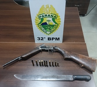 Na tarde do dia 8 de janeiro de 2025, por volta das 15h, a equipe RPA recebeu solicitação para atendimento de disparo de arma de fogo ocorrido no Jardim Pq. São Jorge. Já no local, compareceu o solicitante Sr. C.J.D de 75 anos, relatando que seu primo Sr. A.E de 78 anos, após uma discussão, teria utilizado inicialmente de posse de um facão para ameaçar o solicitante e sua esposa, e em seguida o autor adentrou sua residência e em posse de uma espingarda realizou dois disparos em direção ao solicitante e sua esposa, Sra. L.R.R de 74 anos. Diante das informações, equipe policial adentrou ao quintal onde moram os envolvidos, e logrou êxito em abordar o autor, onde em revista pessoal foram localizados em seu bolso 09 munições calibre .36 intactas, e na sequência localizar no quarto do autor a arma de fogo utilizada, uma espingar calibre .36, com uma munição deflagrada na câmara. Diante dos fatos, dado voz de prisão ao mesmo, e encaminhado para Delegacia de Polícia Cívil de Paiçandu para as providências cabíveis.
