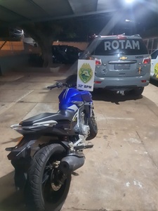 Equipe Rotam 32BPM em patrulhamento pela cidade de Floresta, por volta das 21:40h, ao passar pela rua São Mateus, se deparou com dois indivíduos em uma motocicleta sem placa que ao perceber a presença da equipe policial empreendeu fuga pelas vias da cidade e foram abordados após queda de moto, identificados e nenhum ilícito localizado com os mesmos, porém em consulta ao sistema SESP fora identificado através do chassi que a motocicleta estava com queixa de furto em Maringá, na data de 23/12/25, conforme boletim 2025/1638601. Diante do flagrante delito ambos foram detidos, sendo um homem de 23 anos e um adolescente de 17 anos apreendido, sendo apresentados na 9 Central de Flagrantes para os procedimentos cabiveis.