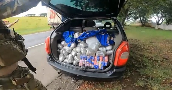 Durante abordagem a um automóvel, os policiais localizaram diversos tabletes de drogas ocultos no porta-malas e no assoalho do veículo. Após a pesagem, foram contabilizados 157 quilos de drogas, sendo maconha e skunk.