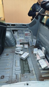Durante a vistoria no veículo, os policiais encontraram diversos compartimentos ocultos em praticamente toda a estrutura da caminhonete — como portas, colunas e caçamba — onde estavam escondidos 350 aparelhos iPhone 17 Pro Max, mercadoria de origem estrangeira sem documentação fiscal.
