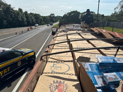 A Polícia Rodoviária Federal (PRF) apreendeu, cerca de 380 mil maços de cigarros contrabandeados, na manhã desta segunda-feira (02), por volta das 09 horas, durante fiscalização realizada na BR-277, em Guarapuava, em caminhão com placas paraguaias.