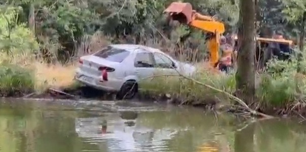Populares informaram aos policiais que visualizaram um homem caminhando pelas cercanias sujo e molhado. Ao encontrarem o sujeito, ele mesmo informou que era passageiro do carro que caiu no açude. Em consulta aos sistemas, os policiais o identificaram como menor de idade.
