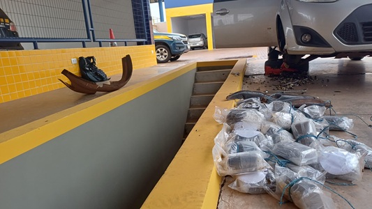 Ao aprofundar a inspeção ao veículo, a equipe identificou compartimentos ocultos na caixas de ar, dos dois lados, e ainda sob os paralamas dianteiros, de onde foram retirados 48 invólucros contendo substância análoga a Haxixe (substância derivada da maconha), totalizando 20,67 kg da droga.