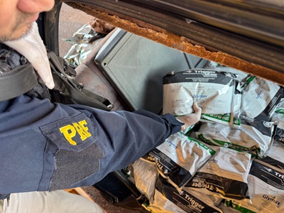 A apreensão ocorreu por volta das 8h. Os agentes abordaram um Fiat Uno e, ao vistoriarem o interior do carro, localizaram centenas de pacotes de inseticidas de fabricação paraguaia.