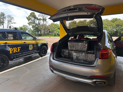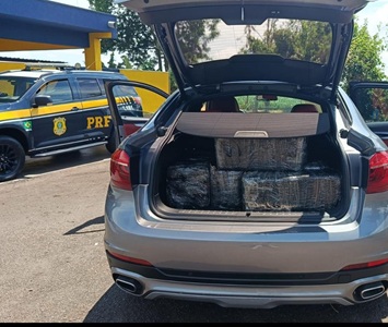A ação resultou na prisão de uma moça e na apreensão de aproximadamente 190 quilos de maconha que estavam sendo transportados no porta-malas de um veículo de luxo.