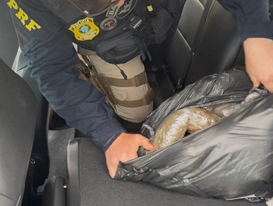 Durante a fiscalização, os policiais notaram forte odor vindo do interior do automóvel. Ao vistoriarem o compartimento de carga, encontraram os volumes contendo as drogas.