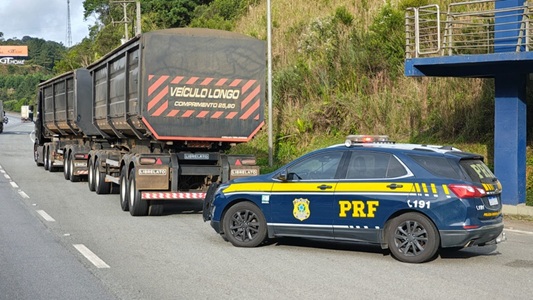 Na tarde de segunda (13), a Polícia Rodoviária Federal (PRF) recolheu ao pátio um bitrem com 94,3 toneladas na BR-376 e diversas irregularidades, na BR-376 em Tijucas do Sul (PR).