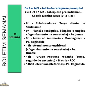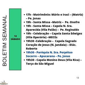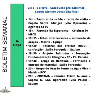 Aqui está a programação da Paróquia São João Batista de Jandaia do Sul