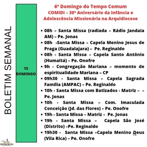 Programação da Paróquia São João Batista de Jandaia / para Sábado e Domingo