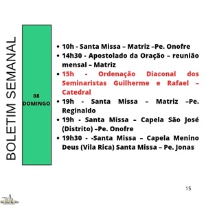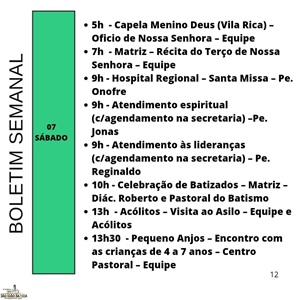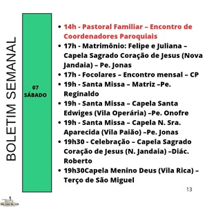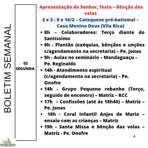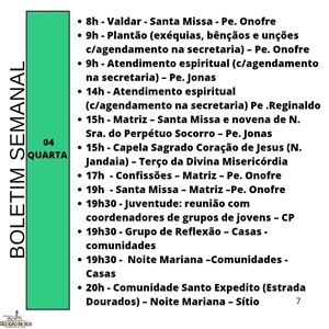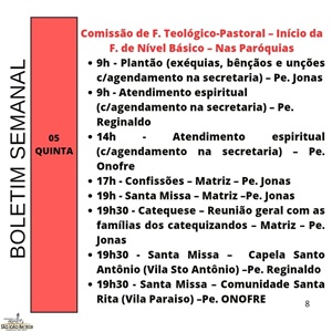 Programação paróquia São João Batista de Jandaia do Sul / Pároco Reinaldo Teruel
