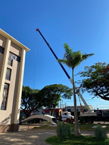 Na manhã desta sexta 05-12, a Igreja Bom Pastor deu continuidade à instalação do novo campanário ao lado do templo. A movimentação chama a atenção de quem passa pelo local, especialmente pelo porte do guindaste utilizado para içar as estruturas metálicas no local.
